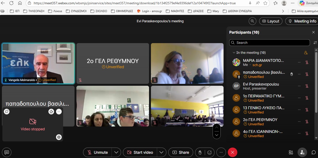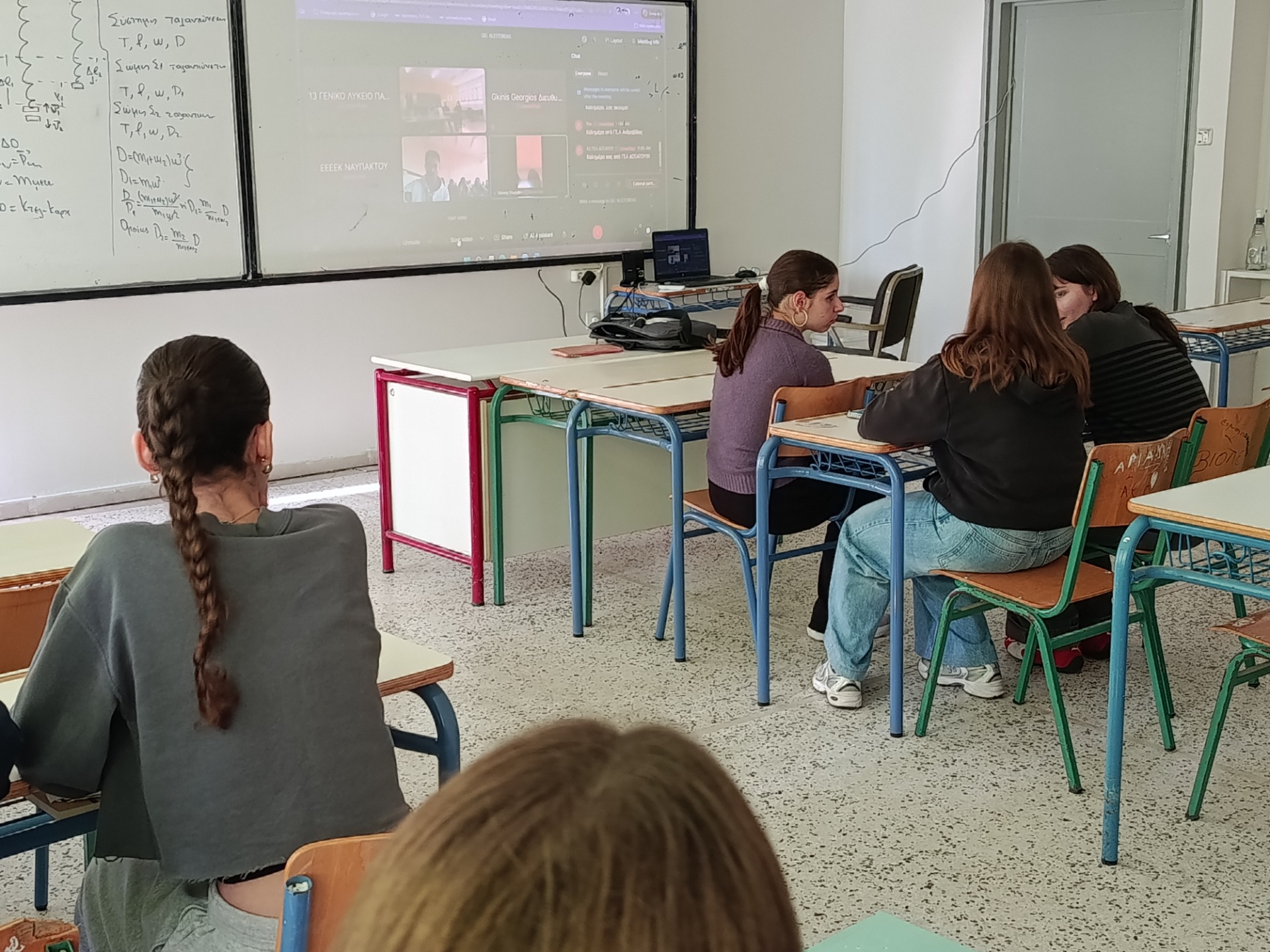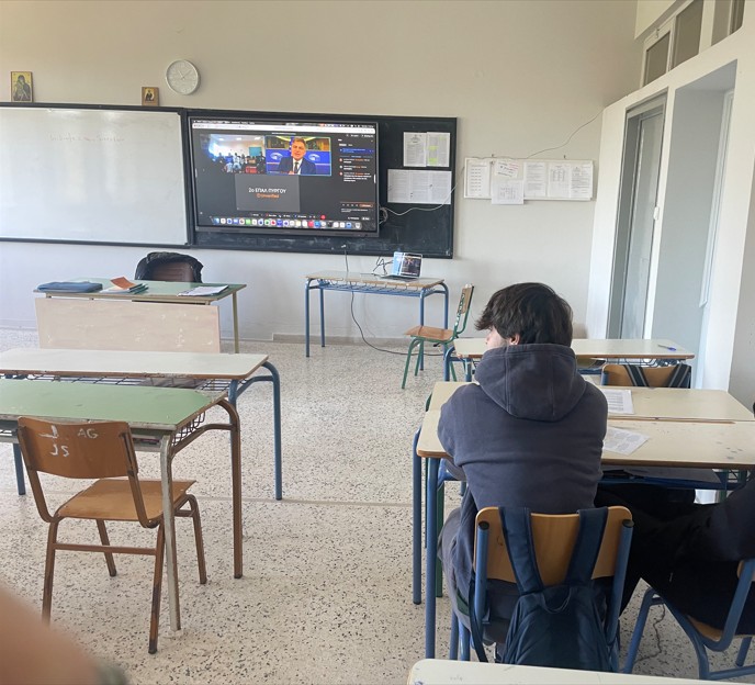 Μαζί με τους μαθητές του 2ου ΕΠΑΛ Πύργου, που διοργάνωσε την διαδικτυακή σύνδεση , του ΠΕΠΑΛ Αμαλιάδας, του ΓΕ.Λ Δοξάτου Δράμας και του ΓΕ.Λ Κλειτορίας, παρακολούθησαν την εισήγηση του ομιλητή και έκαναν ερωτήσεις σχετικές με το θέμα της λειτουργίας του Ε.Κ.