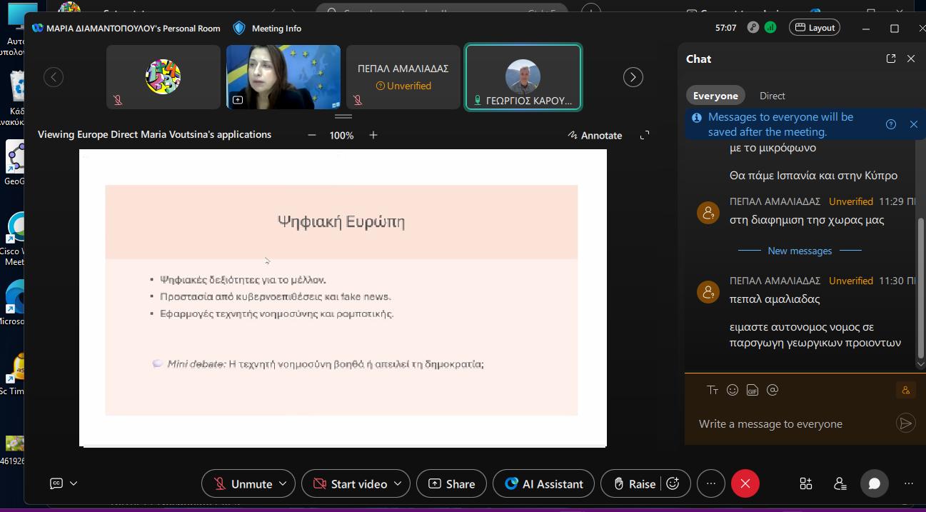 Ενημέρωση από την υπεύθυνη του Europe Direct κα. Μαρία Βουτσινά