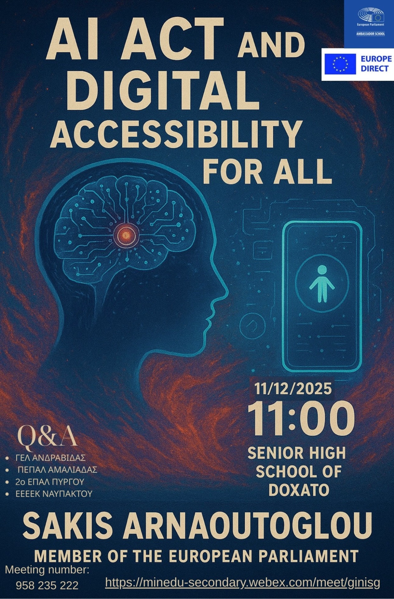 Διαδικτυακή ενημέρωση/σύνδεση με τον ευρωβουλευτή κ. Σάκη Αρναούτογλου και συζήτηση για την τεχνητή νοημοσύνη (Διοργάνωση ΓΕ.Λ Δοξάτου Δράμας 11-12-2025)